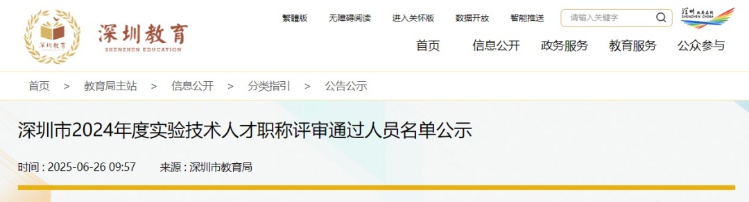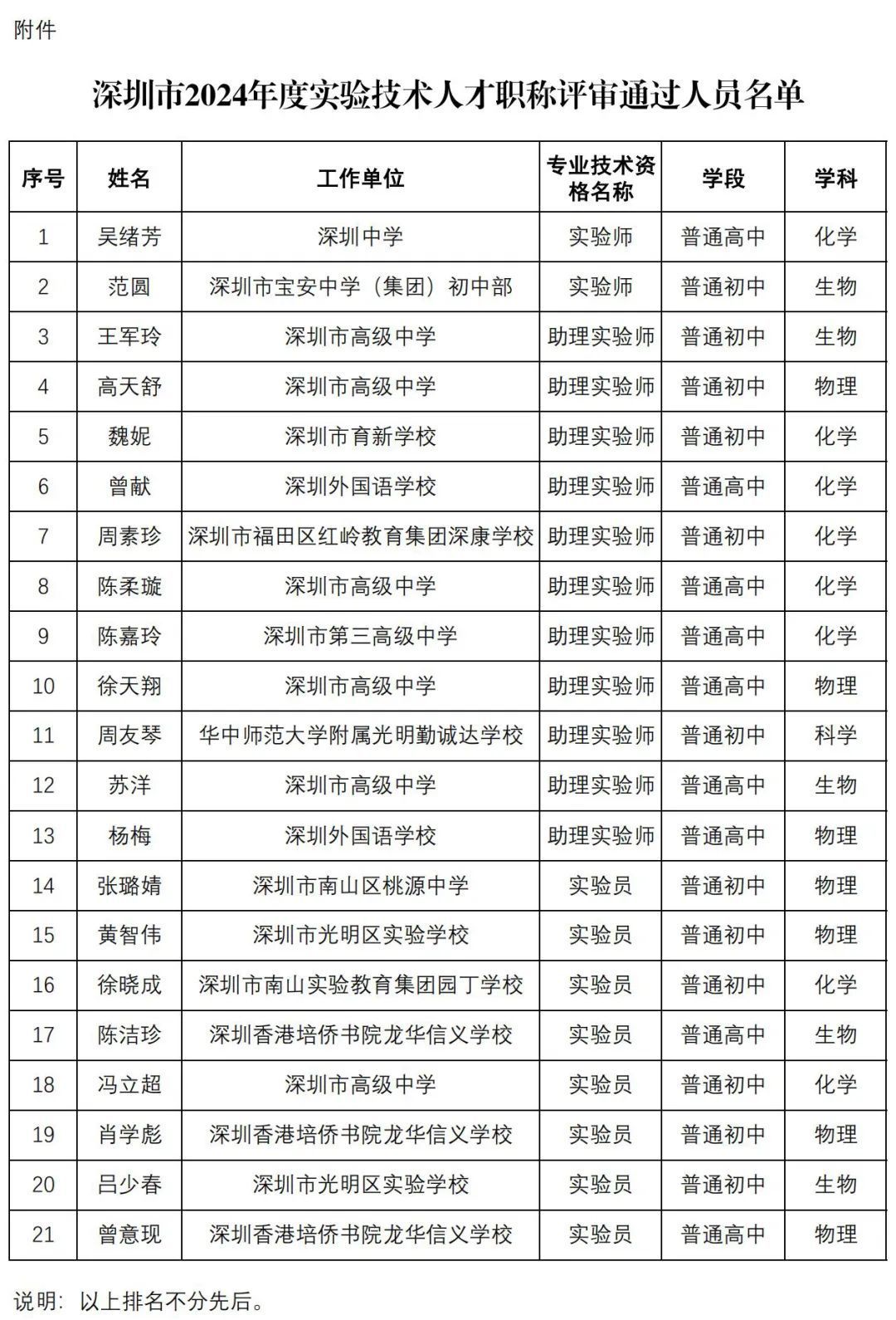 经深圳市中小学、中等奇迹学校、技工院校实验本领东谈主才高等职称评审委员会评审,下列东谈主员通过2024年度实验本领东谈主才职称评审,现予公示。